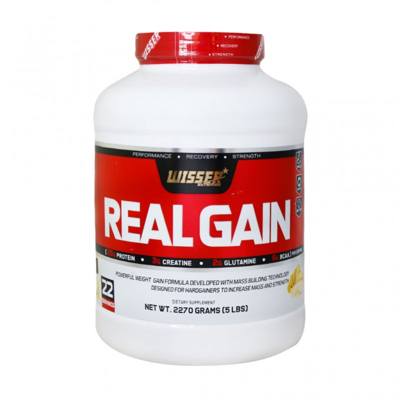 پودر رئال گین ویثر یک مکمل غذایی قدرتمند و موثر برای افزایش وزن است. این فراورده از انواع پروتئین‌ها، ویتامین‌ها، مواد معدنی ضروری، کربوهیدرات و فیبرهای مغذی بهره‌مند شده است. کراتین و گلوتامین موجود در پودر ریل گین ویثر به افزایش سایز عضله‌ها و بهبود عملکرد و قدرت جسمانی ورزشکاران کمک چشمگیری می‌کند. این محصول موجب شده تا افراد در زمان تمرینات شدید و ریکاوری بعد از تمرینات احساس خستگی کمتری داشته باشند و ریکاوری آن‌ها با سرعت بیشتری انجام شود. بی سی ای ای موجود در رئال گین ویسر نیز به سنتز پروتئین و ساخت سلول‌های عضلانی به صورت موثری کمک می‌نماید.