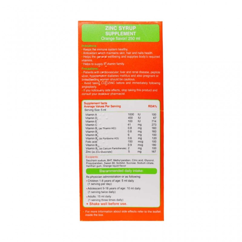 قبل از مصرف بطری شربت Liqo zinc را به خوبی تکان دهید.