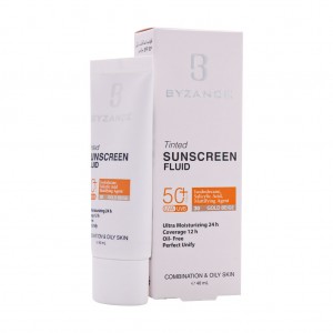 فلوئید ضد آفتاب کرم پودری +SPF50مناسب پوست مختلط و چرب بیزانس 40 میلی لیتر(گلد بژ)